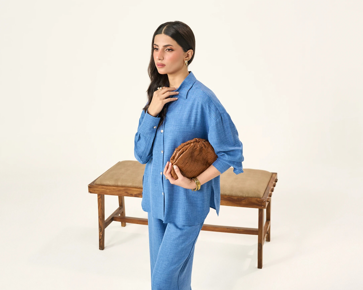 Button-down Co-Ord Set - Warm Blue
