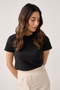 Pique Polo Shirt with Stripe Collar – Black