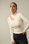Elevate your style with this full-sleeve mock neck top, featuring a cut-out detail on the front