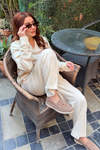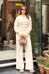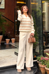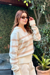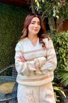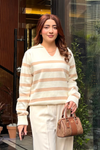 Autumn Glow Stripped Polo Sweater - Cream