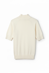 - Features a high neckline with flat knit rib detailing at the neck and sleeves for a clean, minimal finish