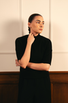 - Features a high neckline with flat knit rib detailing at the neck and sleeves for a clean, minimal finish