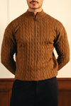 - Features a classic cable knit texture and a quarter zip front for a versatile, refined look