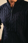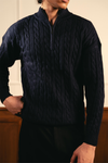 - Features a classic cable knit texture and a quarter zip front for a versatile, refined look