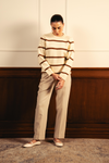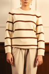 - Features a classic crew neckline with ribbed detailing at the sleeves, neckline, and hem for a refined finish